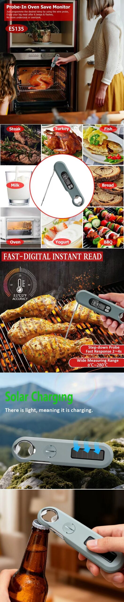 Multi-Use | From bbq thermometer to baking thermometer, our digital food thermometer for cooking is perfect for meats, liquids, deep frying and candy making. For Air fryer, oven, grill, BBQ, Griddle, smoker, kitchen and outdoors.