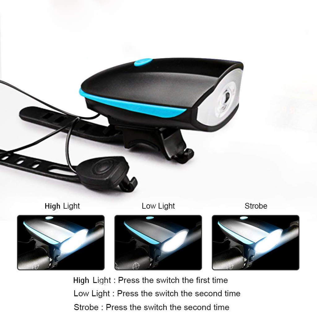 • 【3 Different Modes】:Our bike front lamp includes 3 brightness modes , High Light, Low Light and Strobe.