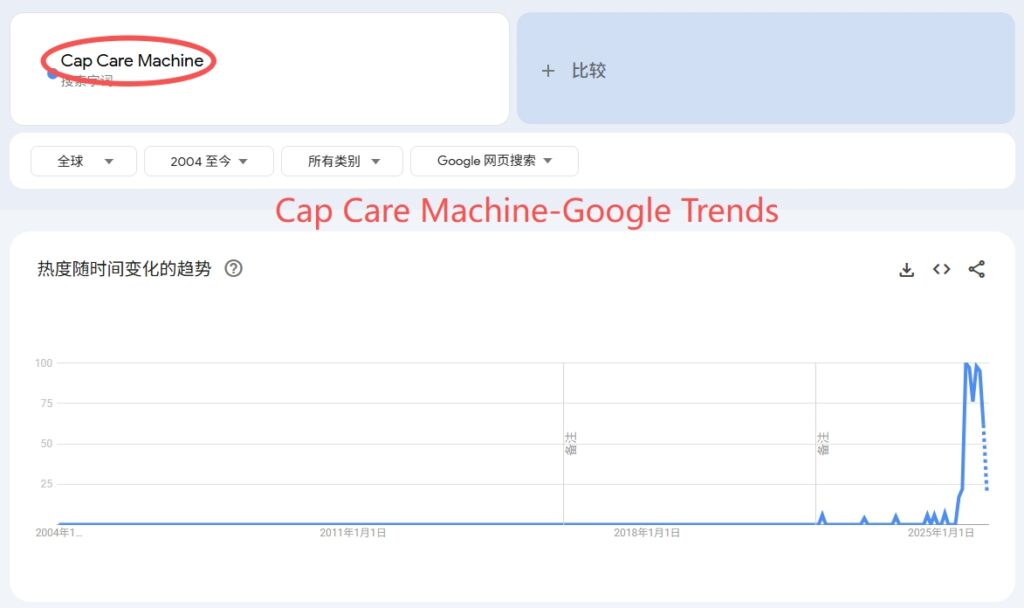The search popularity of the keyword "Cap Care Machine" on Google Trends has shown a sharp upward surge.