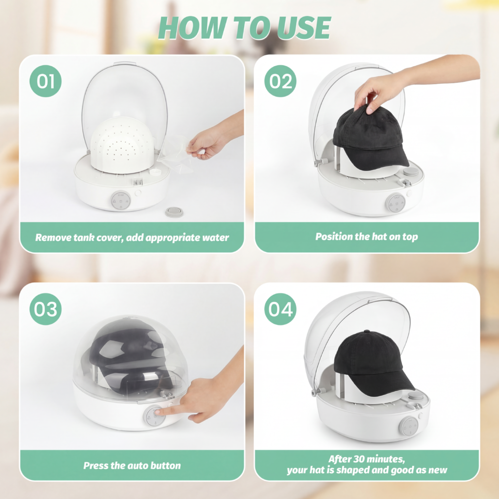 - 【Efficient Steam Cleaning】Built-in multi-nozzle steam system for quick cleaning and drying, effectively removing sweat stains and odors while maintaining hat shape to avoid deformation.
