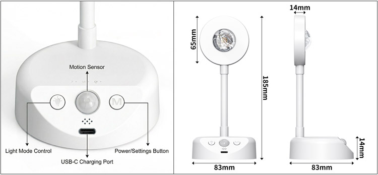 Lightweight ABS mini design with wireless adhesive/magnetic mounting and adjustable angle for flexible placement.