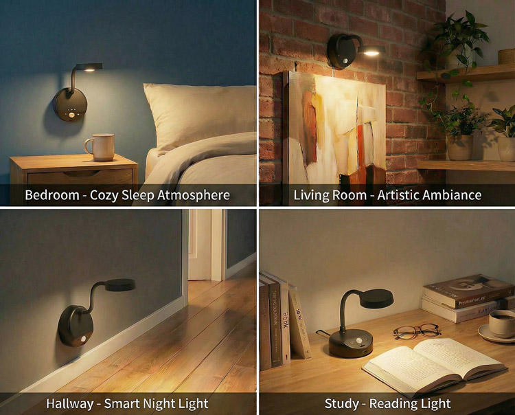 Features motion sensor with 3m range, 3 operating modes, adjustable color temperature/brightness, and dual remote/touch control for versatile use.