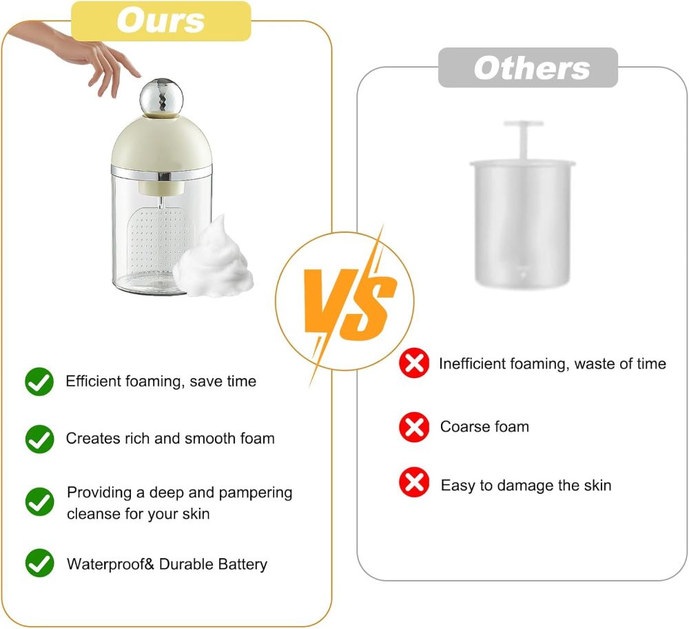 - 【Deep Cleansing】This electric latherer can quickly whip up a fine foam, this foam is easier to penetrate deeper into the pores, which can more thoroughly clean the dirt and oil on your face, making your skin cleaner and fresher.