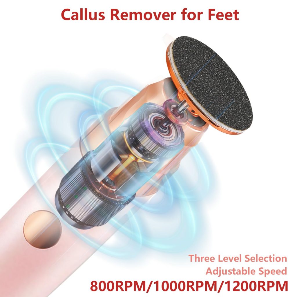- 【New Update Electric Foot Grinder】This callus remover for feet save time and effort compared to manual foot file and scrubber or pumice stone. Compared to other foot grinding tools, it is more gentle, prevents over-grinding or bleeding, ensuring a safer experience.
