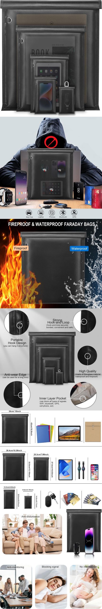 - 【Waterproof & Fireproof】-Faraday bags is made of premium fiberglass fireproof cloth, which makes it not only can withstand temperatures without being burned by high temperatures; but also highly waterproof resistance, which allows our faraday bags for key fob to withstand water jets in most conditions, keeping your faraday bag purse and equipment safe. So you can use our faraday pouch for cell phone with confidence