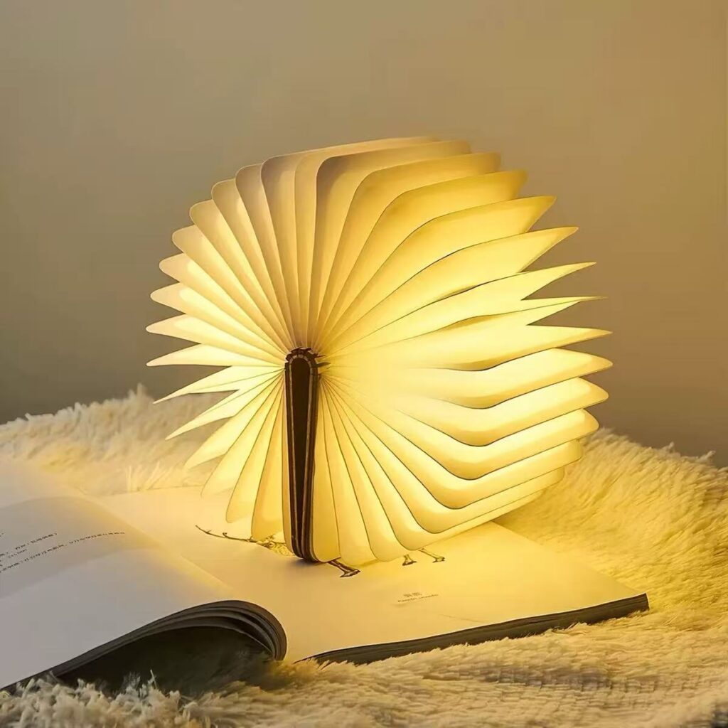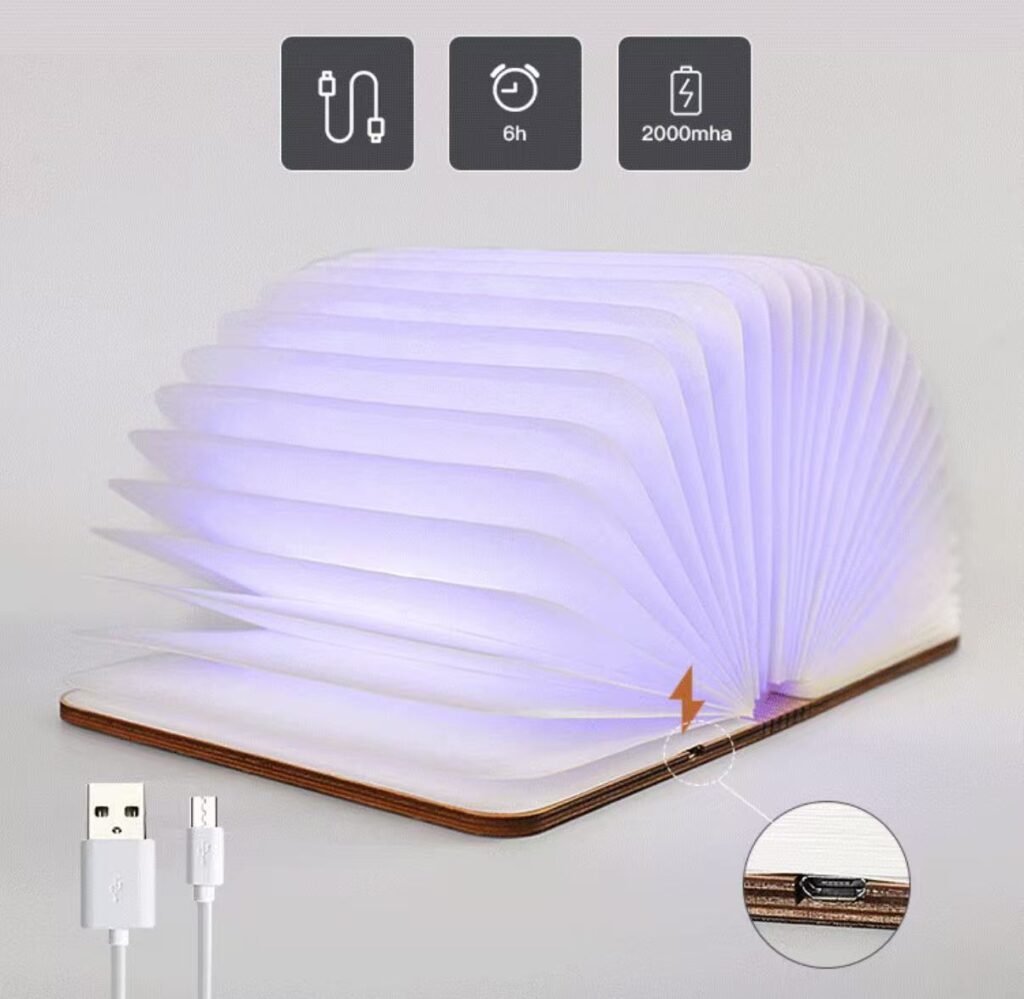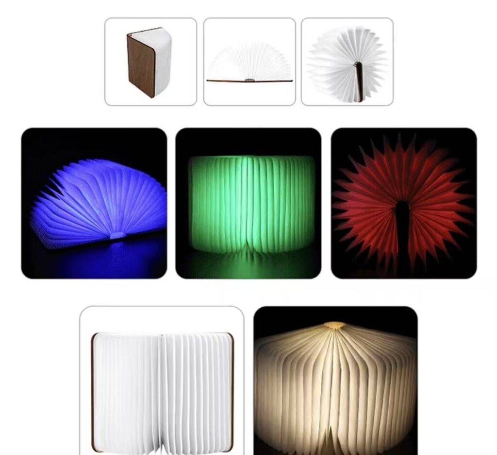 - Unique Book Design: Folds like a real book, with a natural wood cover and flexible, fan-shaped light pages.