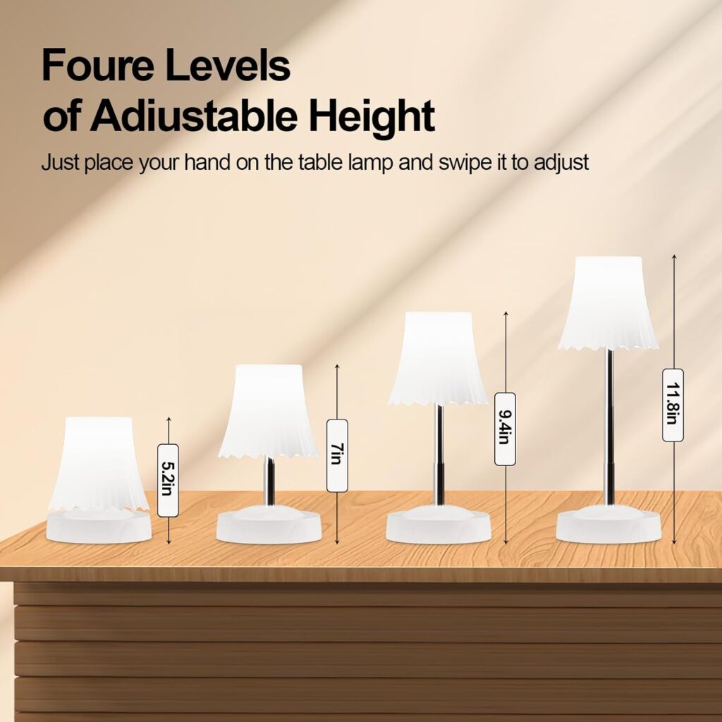 【3-Level Height Adjustment】Cordless lamps rechargeable stretch the lamp pole to 13cm/20cm/30cm (5.3/7.8/11.8 inches) to fit different scenarios (reading, working, ambient lighting).