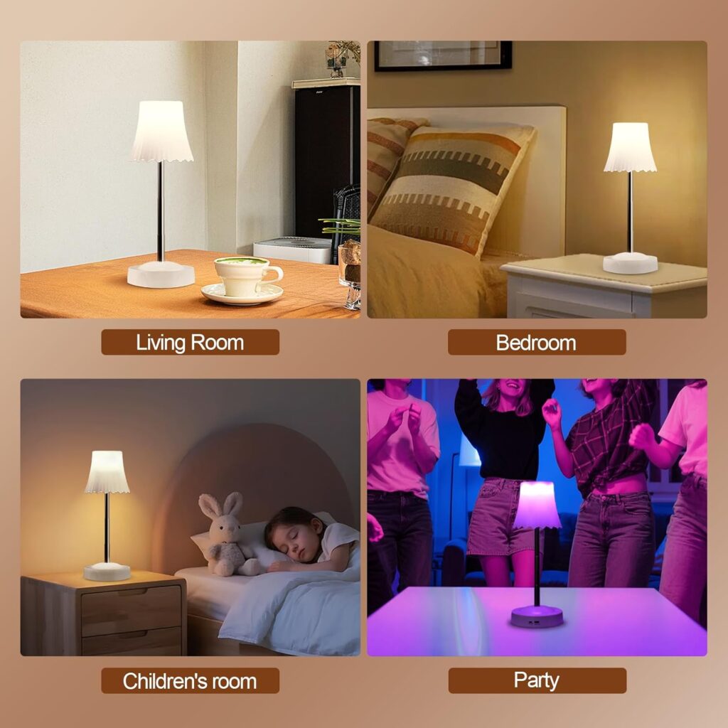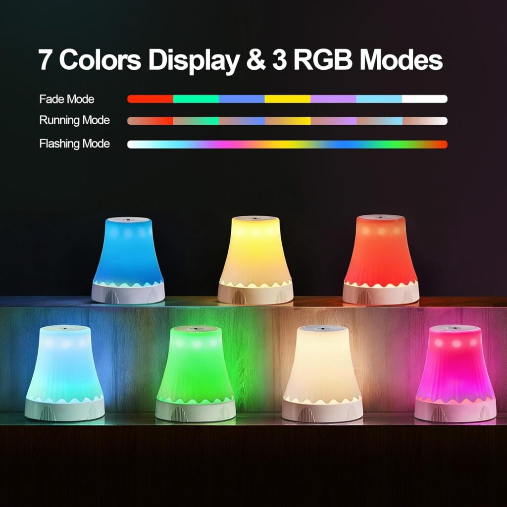 【7 RGB Colors & 3 Dynamic Mood Lighting】Create your own ambiance with 7 vibrant RGB colors. Plus, cordless table lamps rechargeable enjoy 3 captivating dynamic modes (e.g., Running, Flashing, Fade) to add fun and a modern vibe to your parties, gaming sessions, or relaxation time.