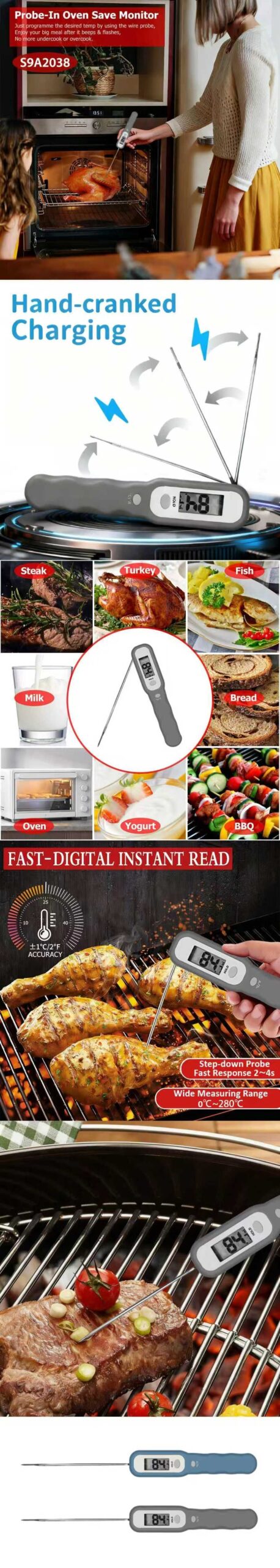 Hand-Cranked Charging Instant Read Food Thermometer