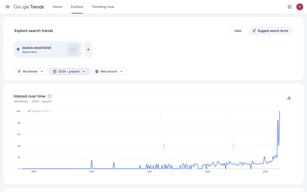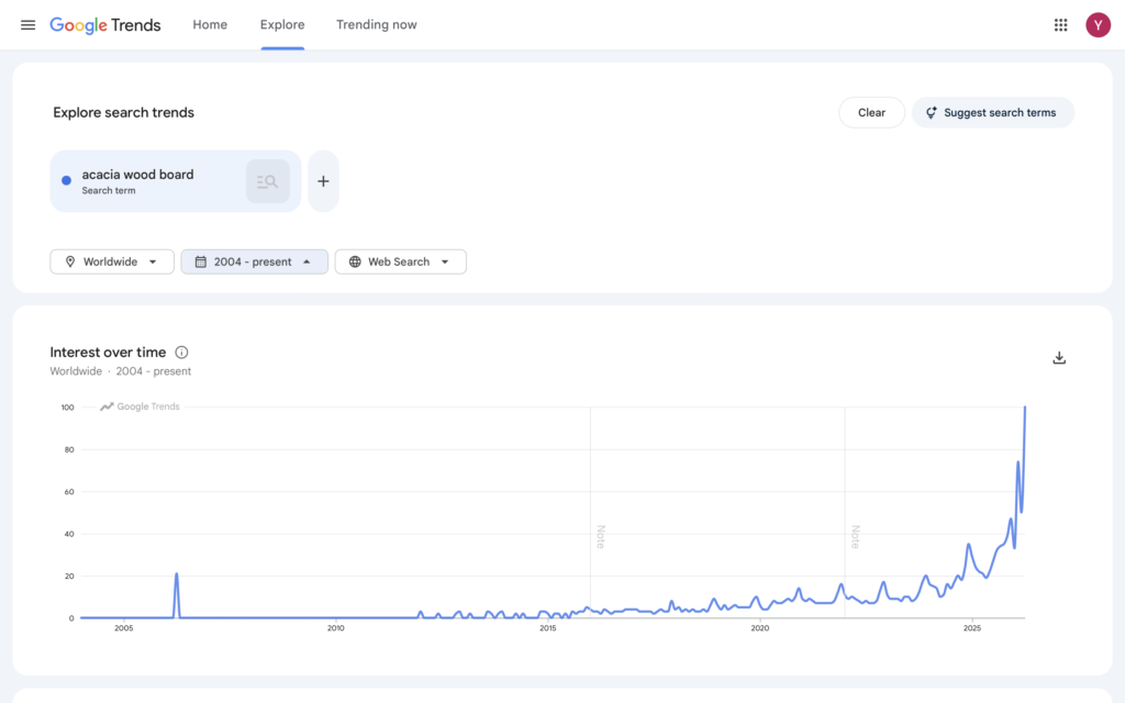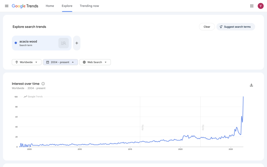 Acacia wood kitchenware is seeing strong, rising global demand (as shown in recent search trends ),