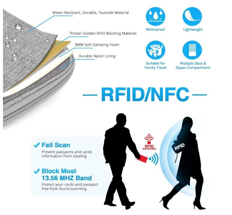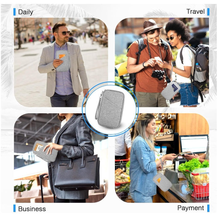【Rfid Blocking Protective passport bag】RFID-blocking, multiple pockets for passports, cards, cash and keys.