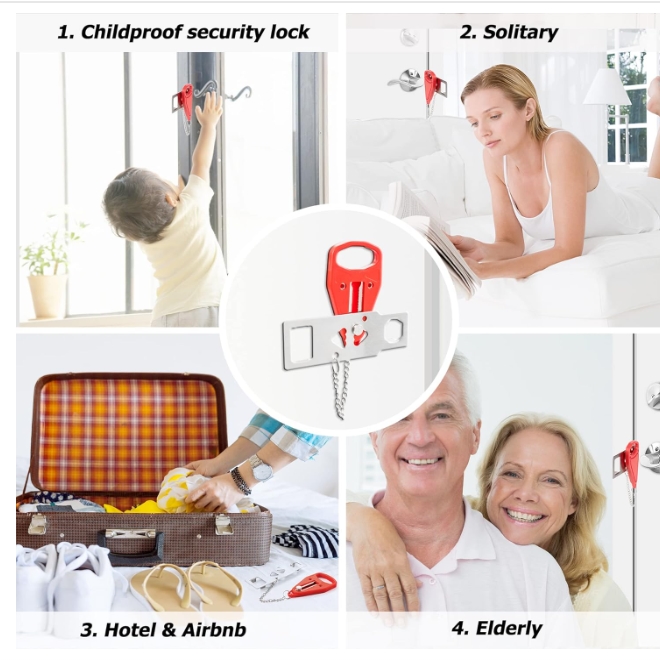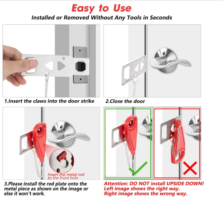 【SECURITY AND PRIVACY】 This portable door lock enhances security and privacy, preventing unauthorized entry.