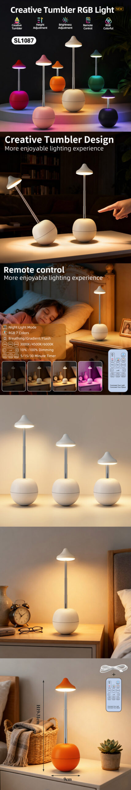 Size: Base D9CM, H19~31CMPackage: 1pc in color box